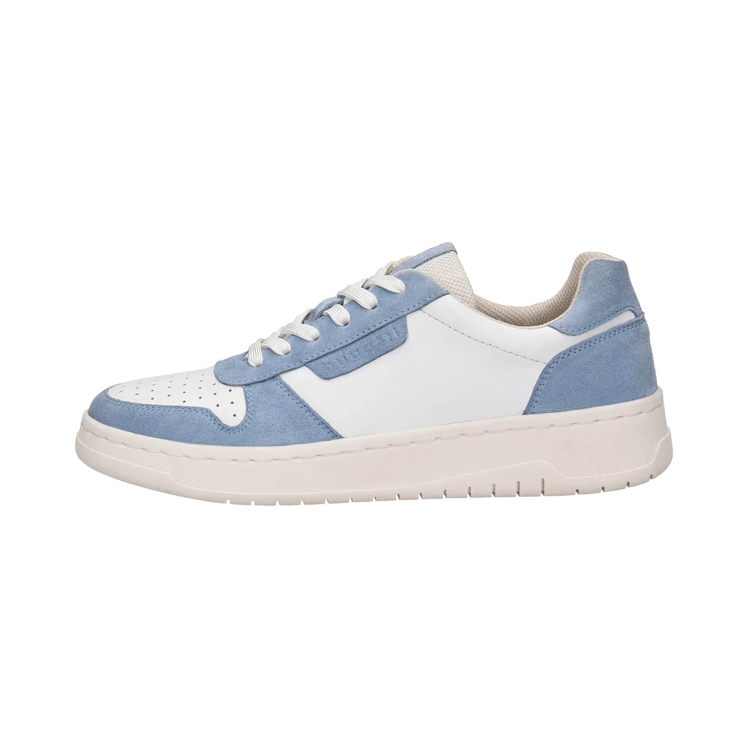 Diese Leder-Sneaker von bugatti präsentieren sich in einem modischen Look mit einer zarten und bequemen Silhouette. Sie wurden mit atmungsaktiven Perforationen versehen, die die Füße während des ganztägigen Tragens kühl halten. Diese Damen-Sneaker der Kayla-Gruppe, die mit hellblauen Einsätzen für einen zusätzlichen Farbkontrast ausgestattet sind, versprechen vielseitige Looks, bei denen der Schwerpunkt auf Komfort und einer ansprechenden Ästhetik mit minimalistischen Details liegt. Sie sind somit eine ausgezeichnete Wahl für moderne Kleiderschränke.
